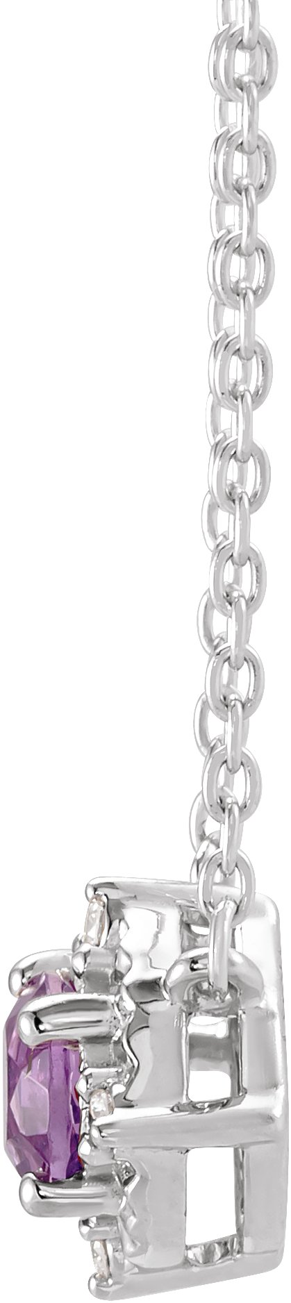 14K White Natural Amethyst and .04 CTW Natural Diamond Halo Style 18 inch Necklace Ref 17917642