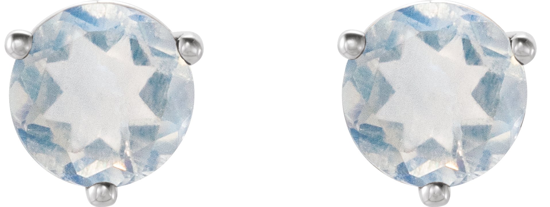Description: Natural Blue Sheen Moonstone Round 3-Prng Earrings