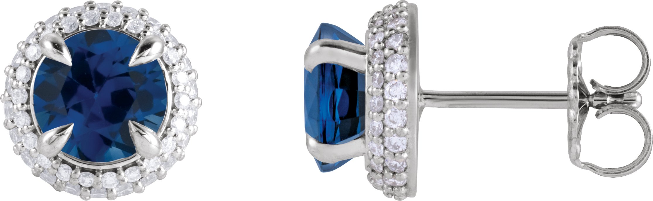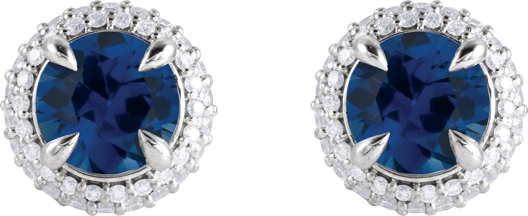 Description: Natural Blue Sapphire And 1/2 CTW Natural Diamond 4-Claw Prong Pre-Notched Double Halo-Style Earrings