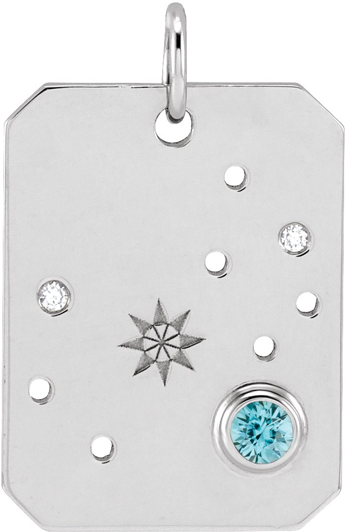 Description: Blue Zircon And Natural Diamond Accented Zodiac Constellation Pendant