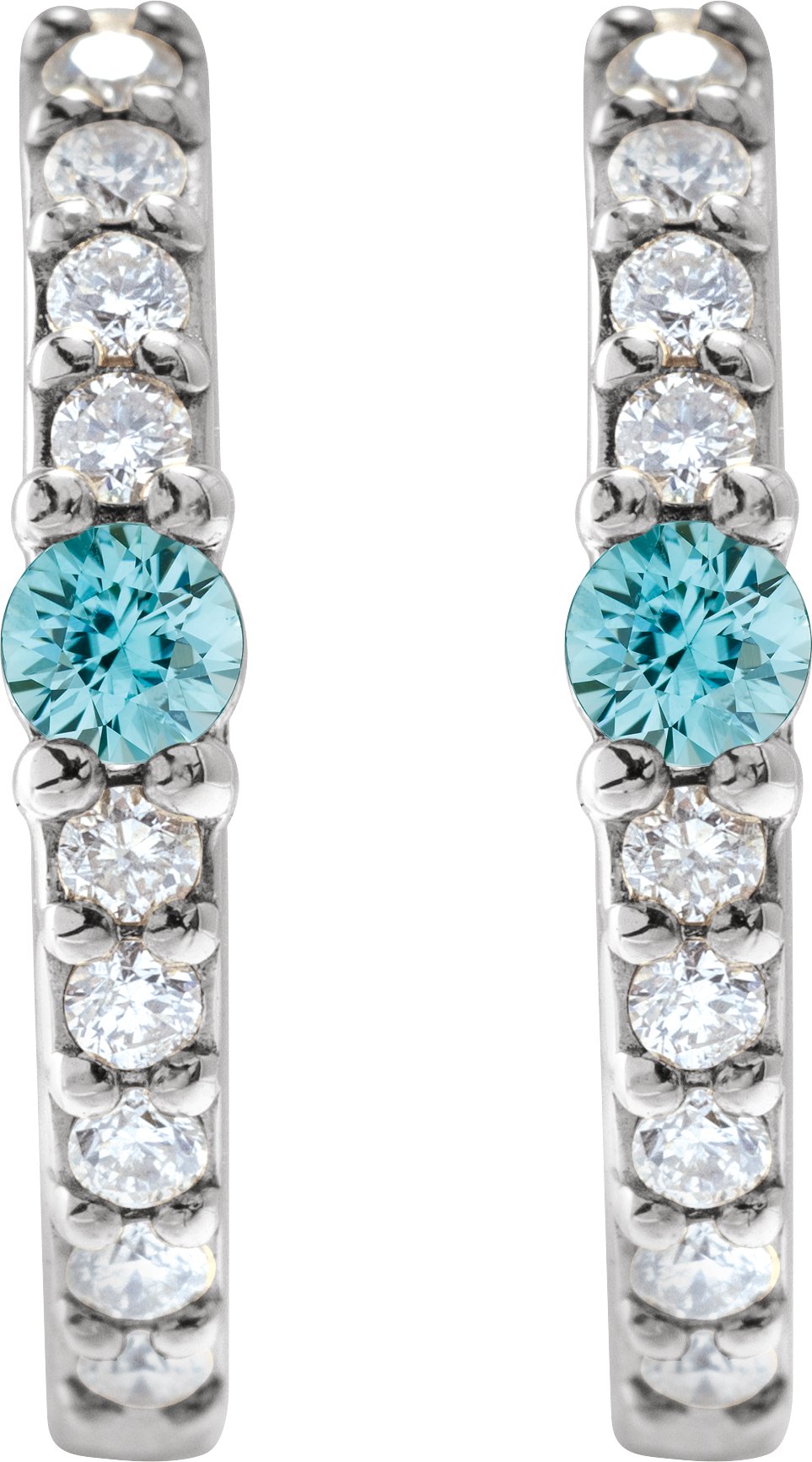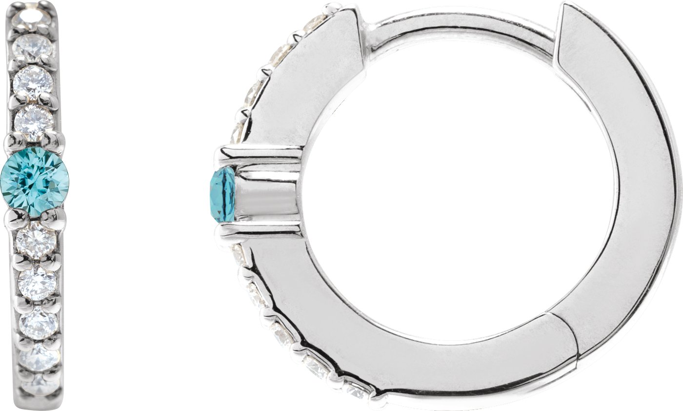 14K White Natural Blue Zircon & 1/8 CTW Natural Diamond 13.6 mm Hoop Earring