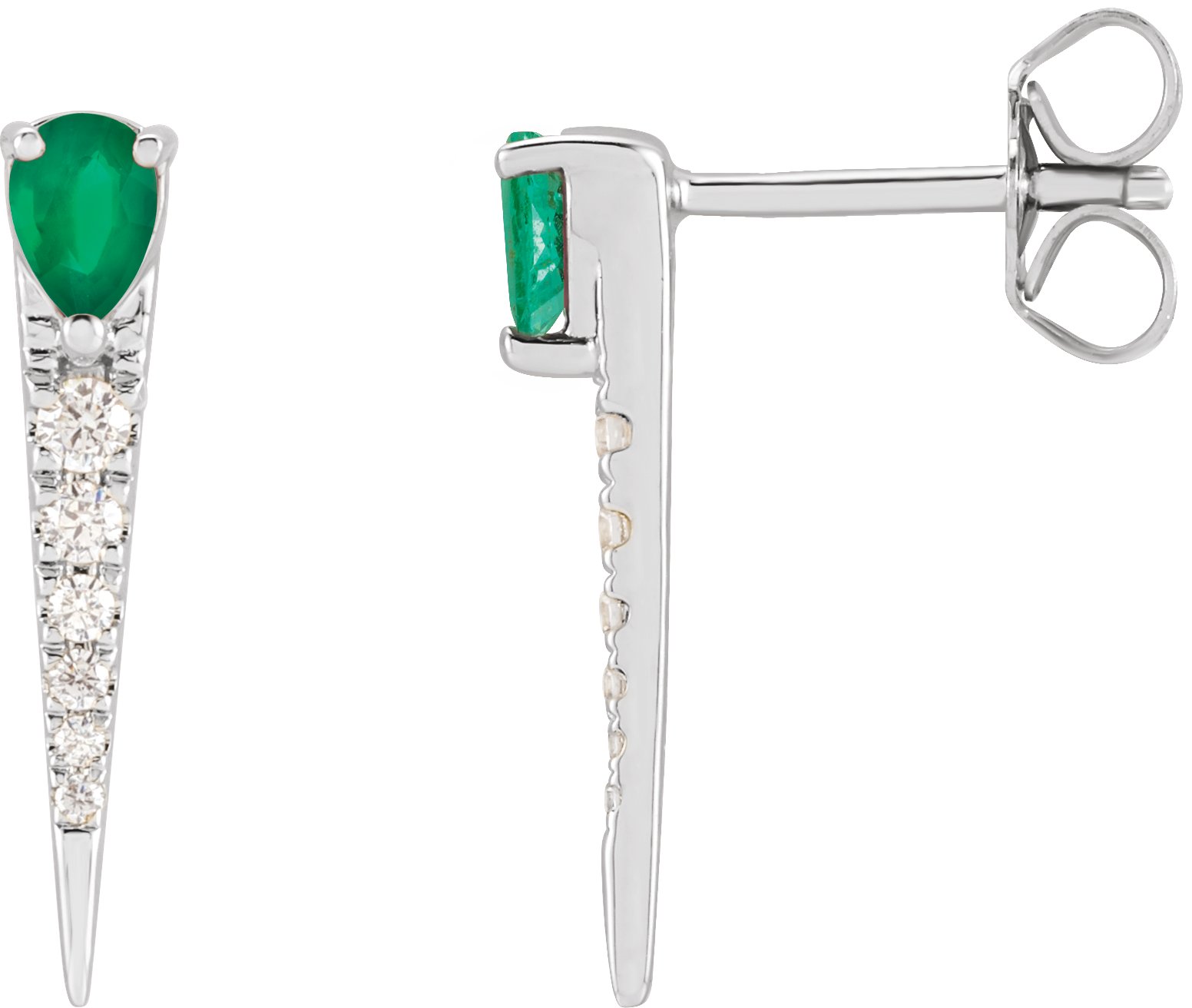 Description: Natural Emerald And 1/8 CTW Natural Diamond Accented Spike Earrings