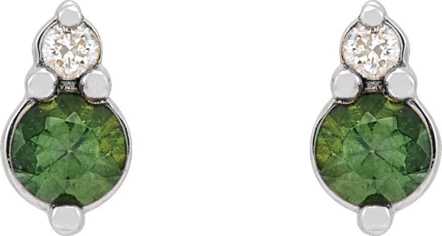 14K White Natural Green Sapphire and .03 Natural Diamond Earrings Ref 18483623