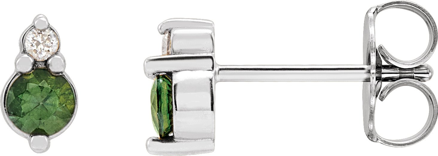 Description: Natural Green Sapphire And .03 CTW Natural Diamond Earrings