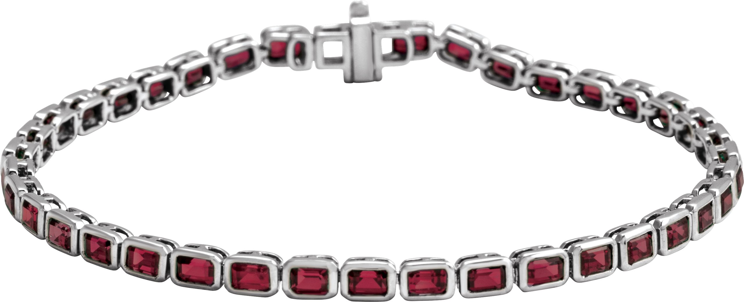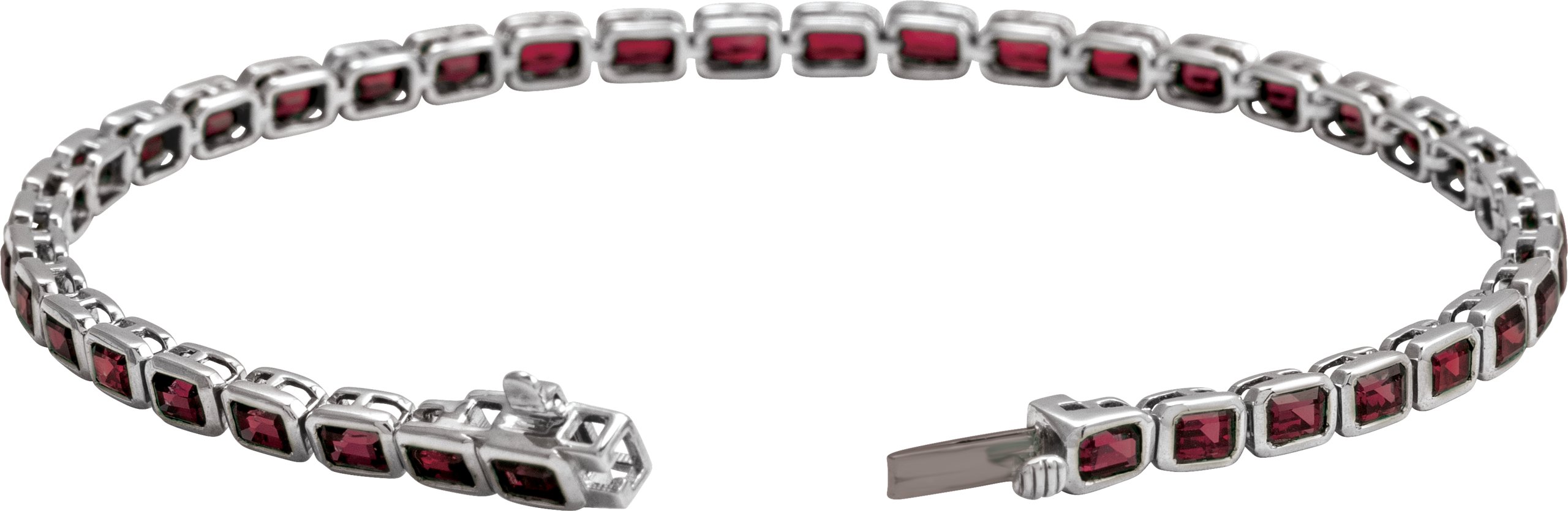 14K White Natural Mozambique Garnet Line 7" Bracelet