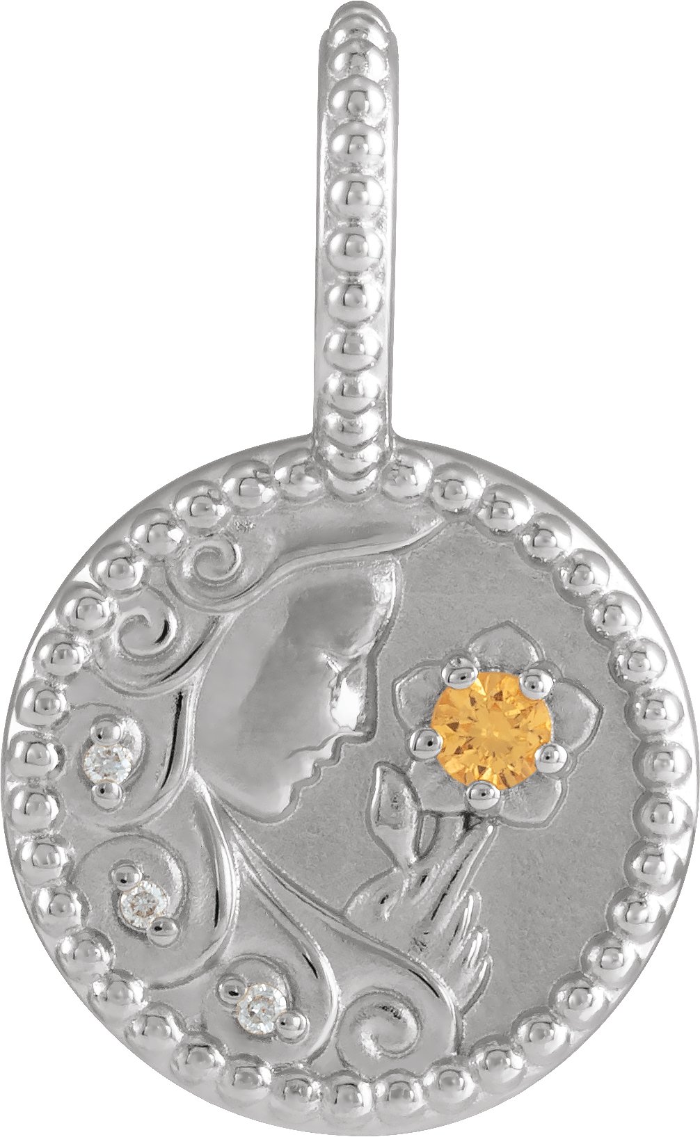 14K White Natural Orange Garnet and .075 CTW Natural Diamond Virgo Charm or Pendant Ref 19836084