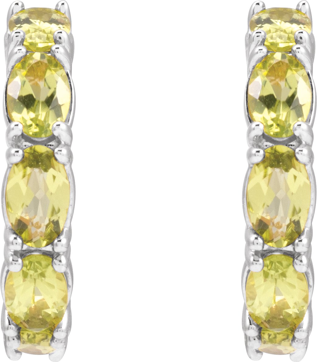 14K White Natural Peridot Hoop Earrings