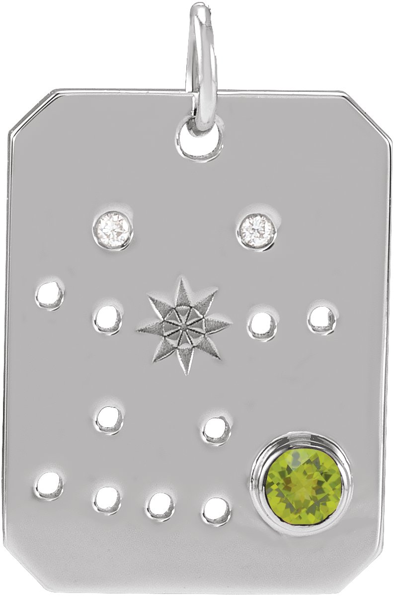 Description: Natural Peridot And Natural Diamond Accented Zodiac Constellation Pendant