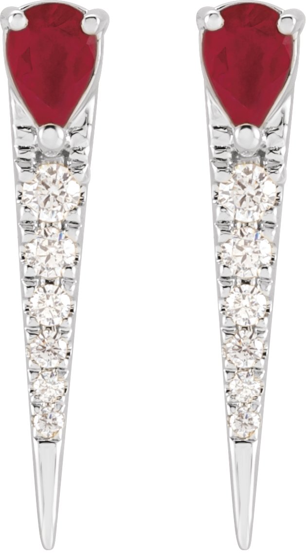 Description: Natural Ruby And 1/8 CTW Natural Diamond Accented Spike Earrings