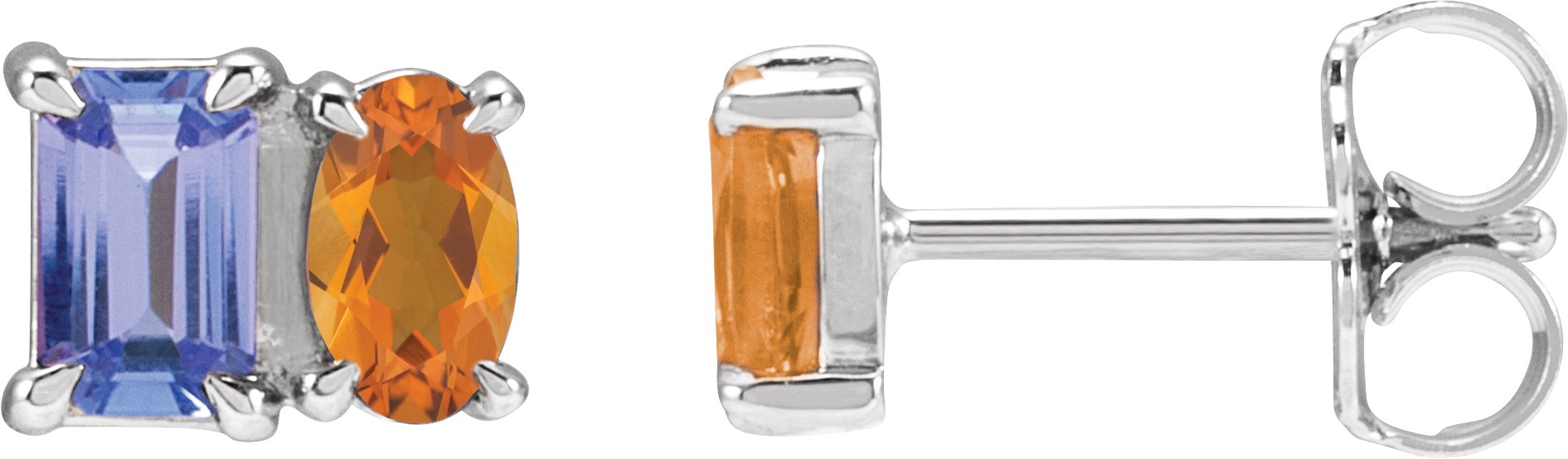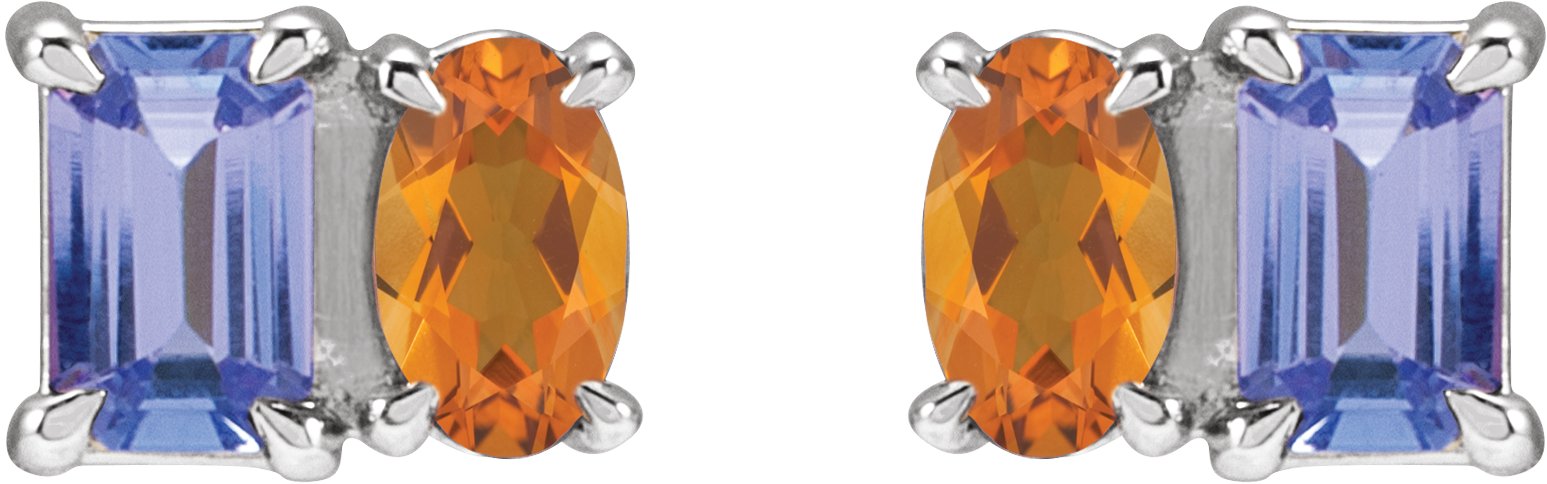 14K White Natural Tanzanite & Natural Citrine Two-Stone Stud Earrings