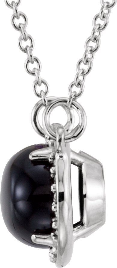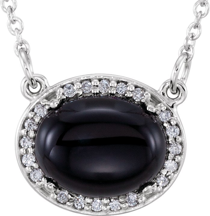 14K White Onyx & .05 CTW Diamond Halo Style 16.5 inch Necklace