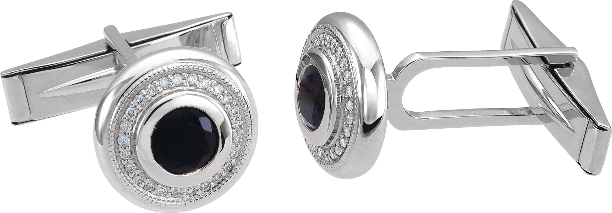 Description: Men's Genuine Onyx And .06 Ctw Diamond Cuff Links