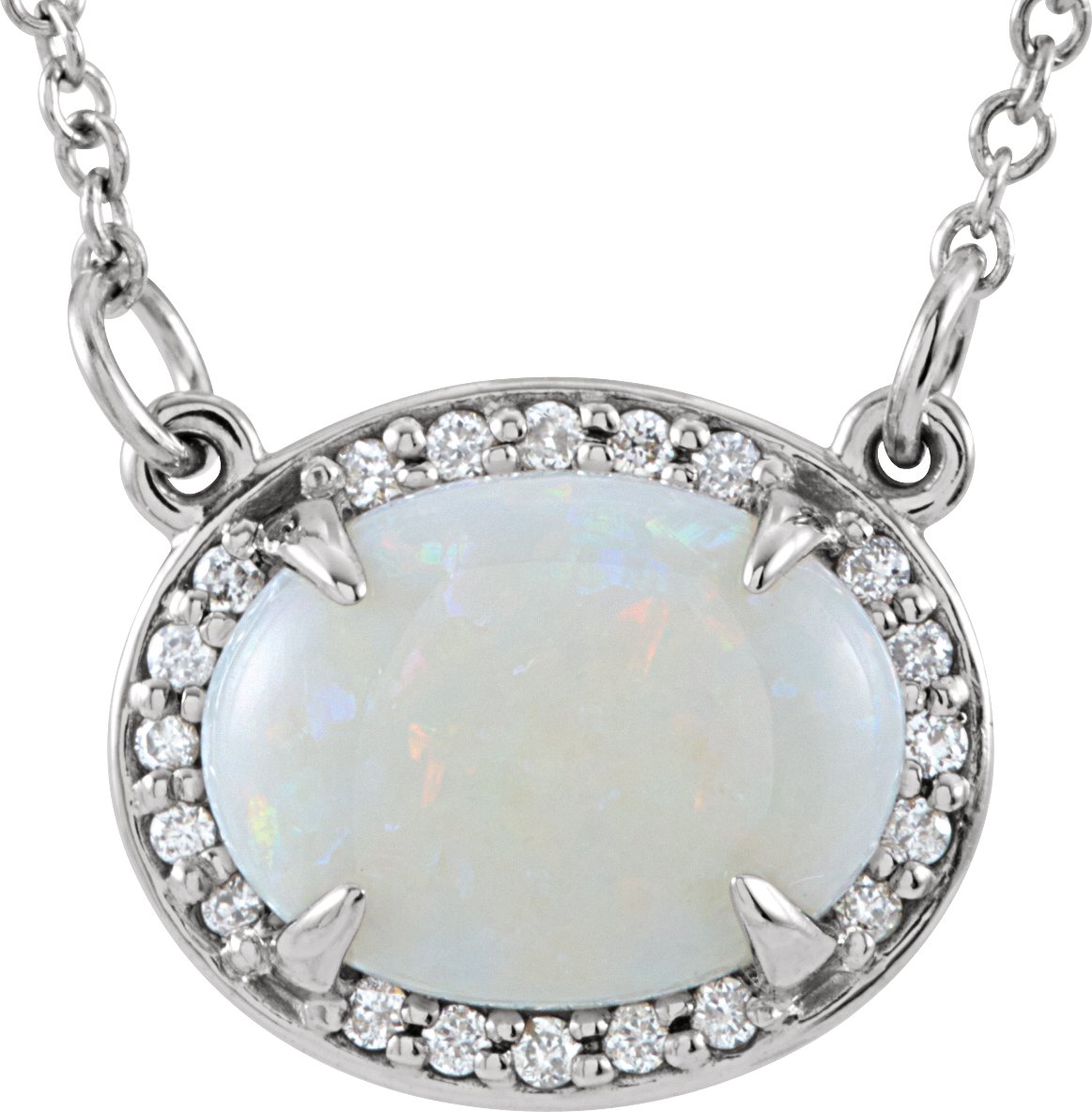 14K White Opal & .05 CTW Diamond Halo Style 16.5 inch Necklace