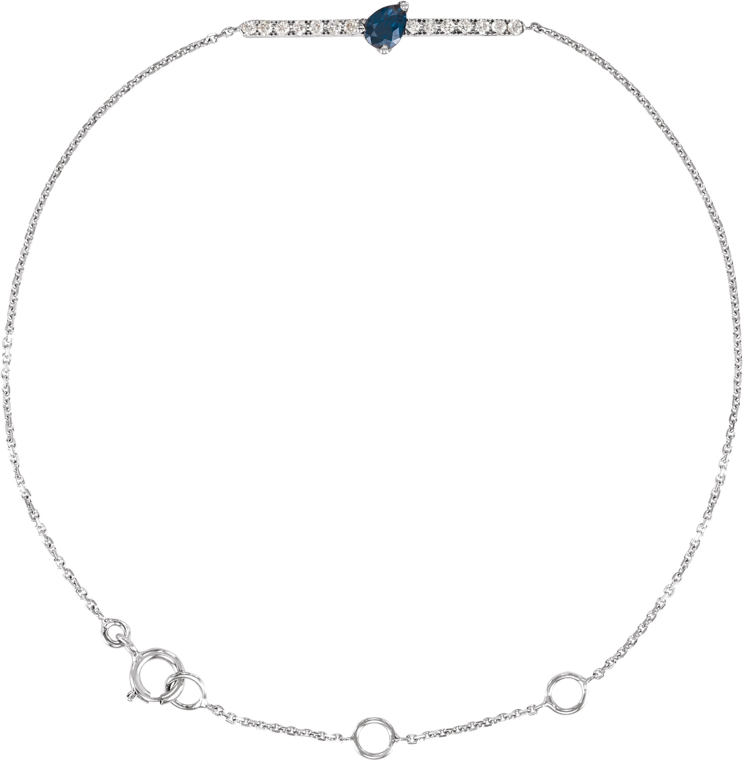 14K White Pear Natural Blue Sapphire and .07 CTW Natural Diamond Bar 6.50 to 7.50 inch Bracelet Ref 17325007
