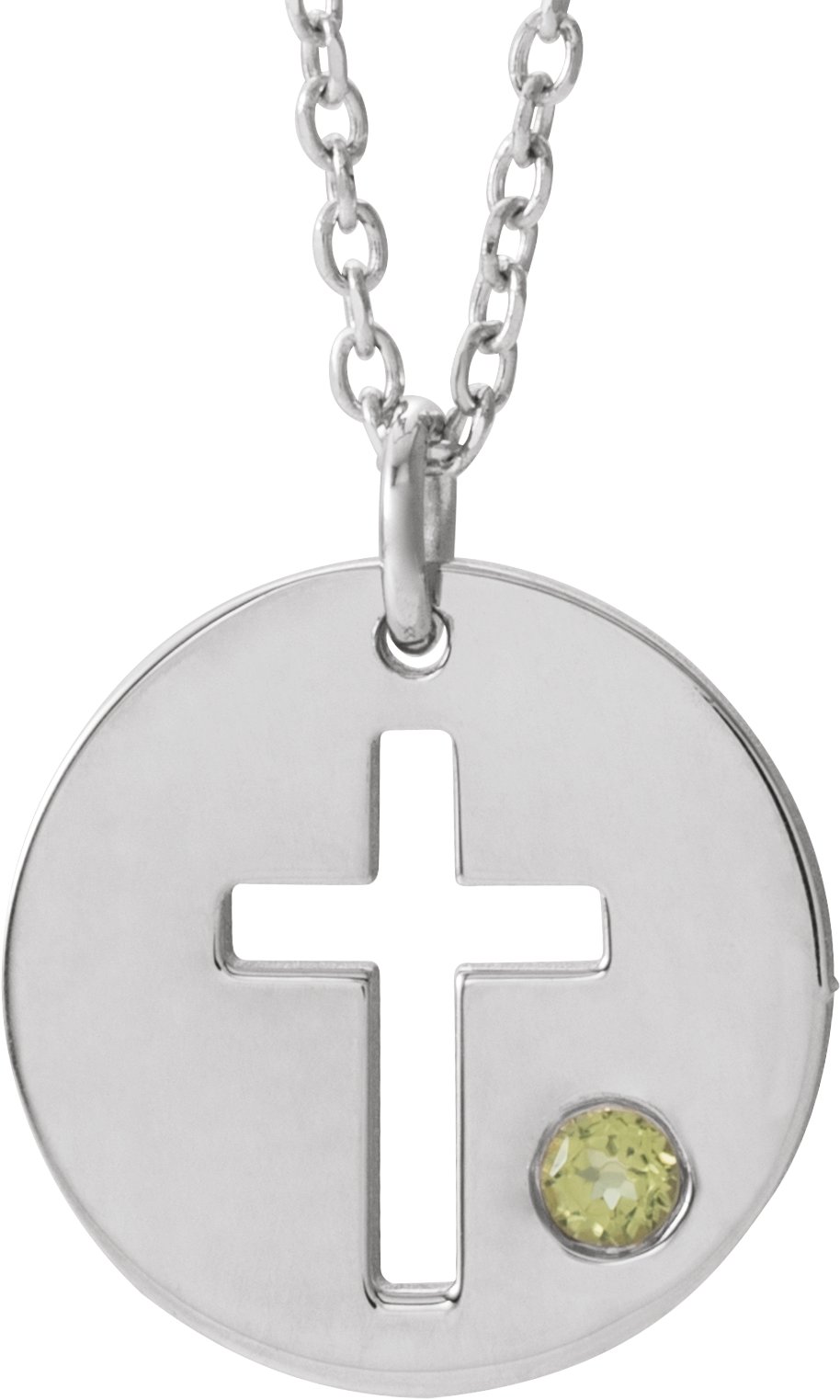 14K White Peridot Pierced Cross Disc 16 18" Necklace Ref. 13377642