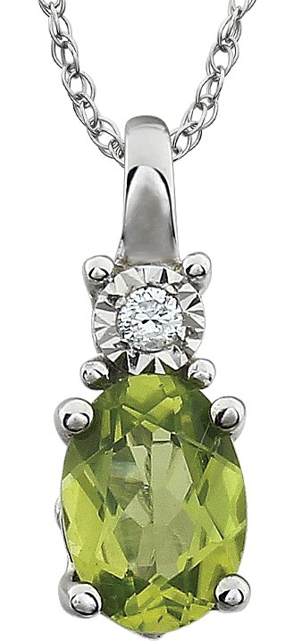 14K White Peridot & .02 CTW Diamond 18 inch Necklace