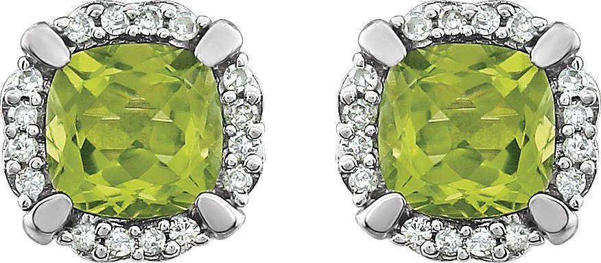 14K White Peridot & 1/10 CTW Diamond Earrings