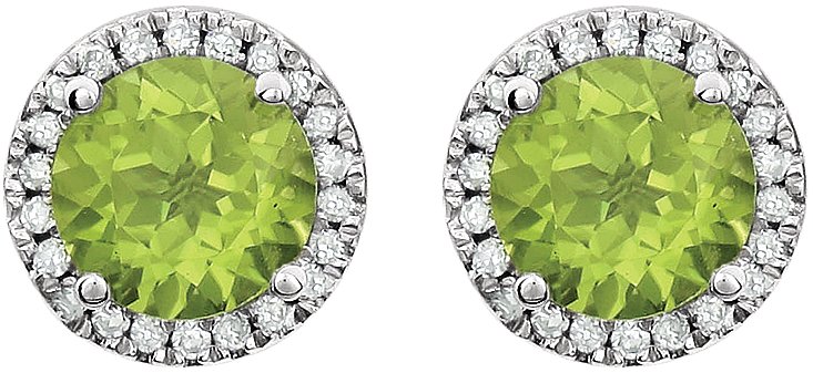 14K White Peridot & 1/8 CTW Diamond Earrings