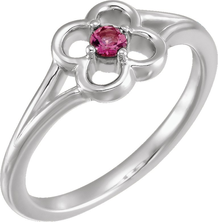 Description: Genuine Pink Tourmaline Flower Youth Ring