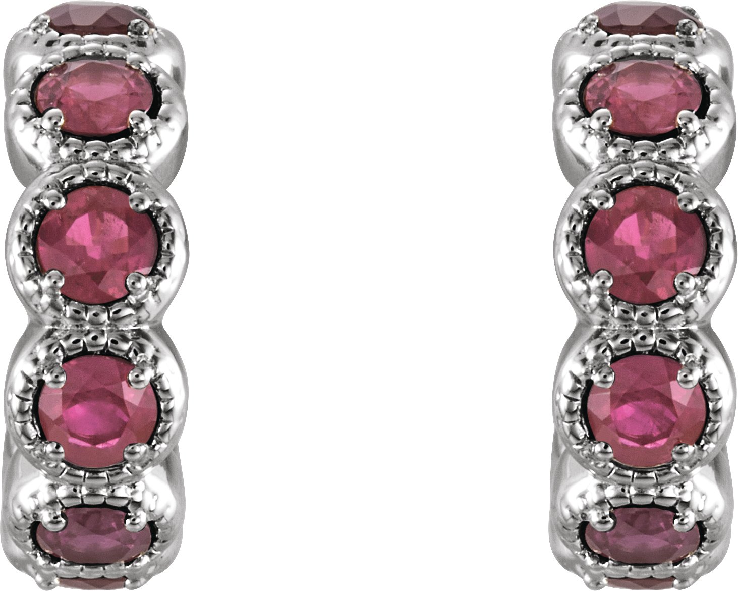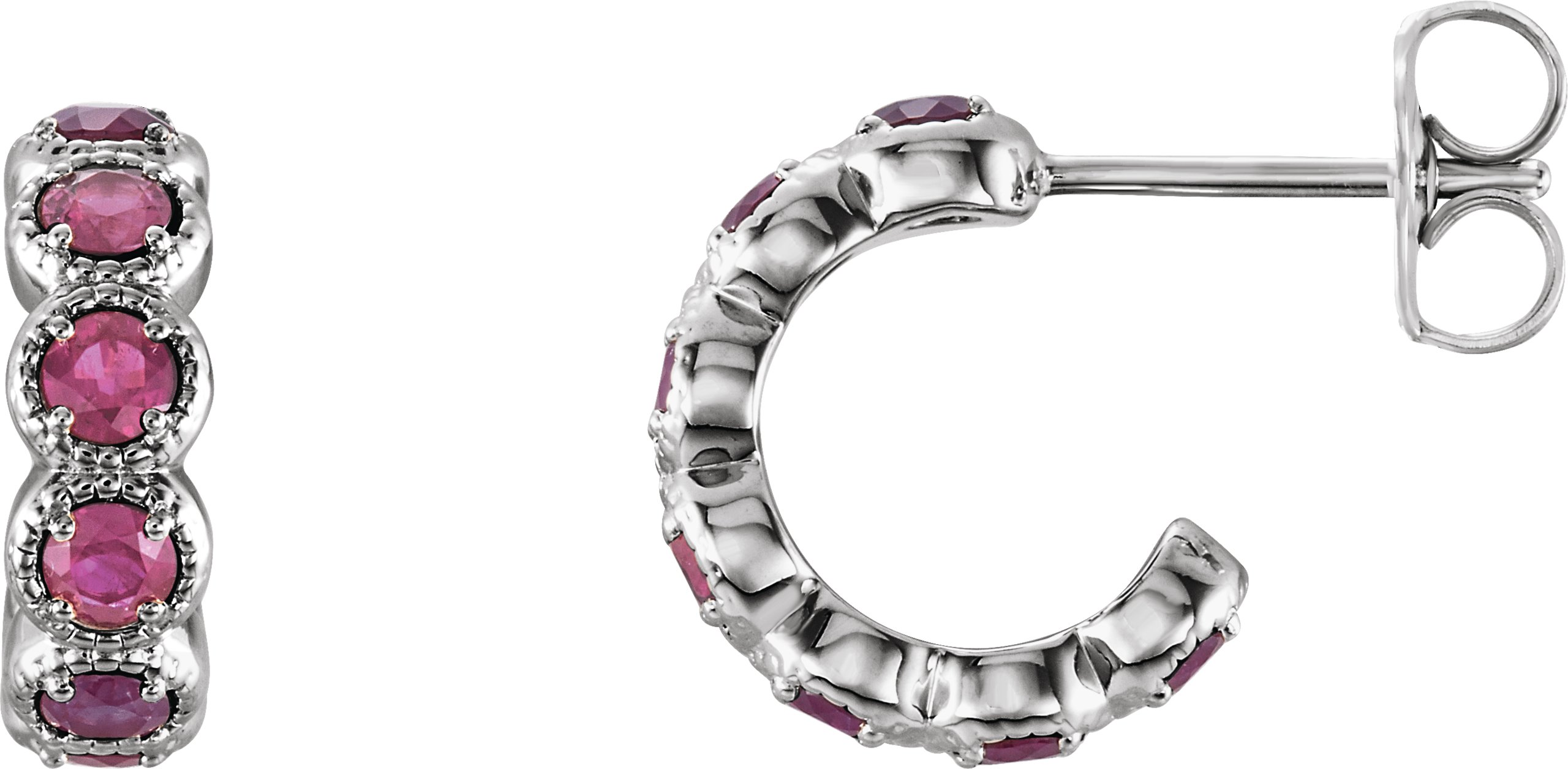 14K White Pink Tourmaline Hoop Earrings