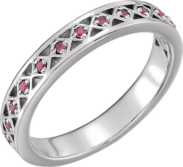 14K White Pink Tourmaline Stackable Ring
