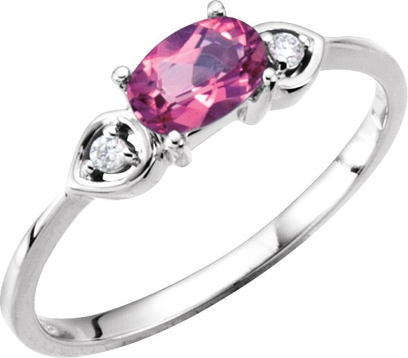 14K White Pink Tourmaline and .03 CTW Diamond Ring