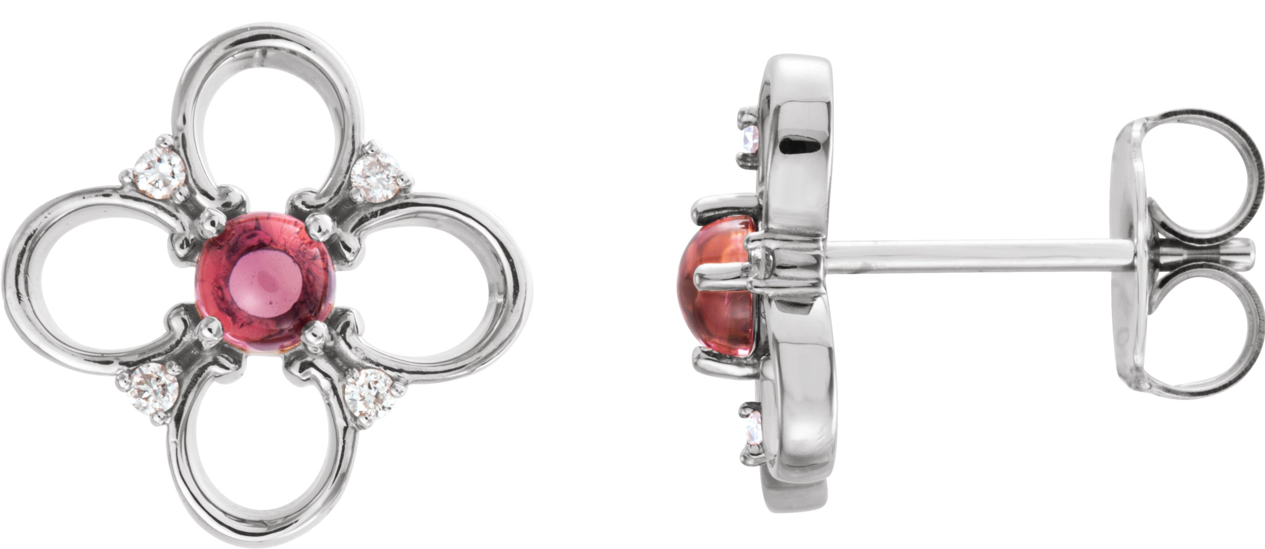 14K White Pink Tourmaline and .04 CTW Diamond Earrings