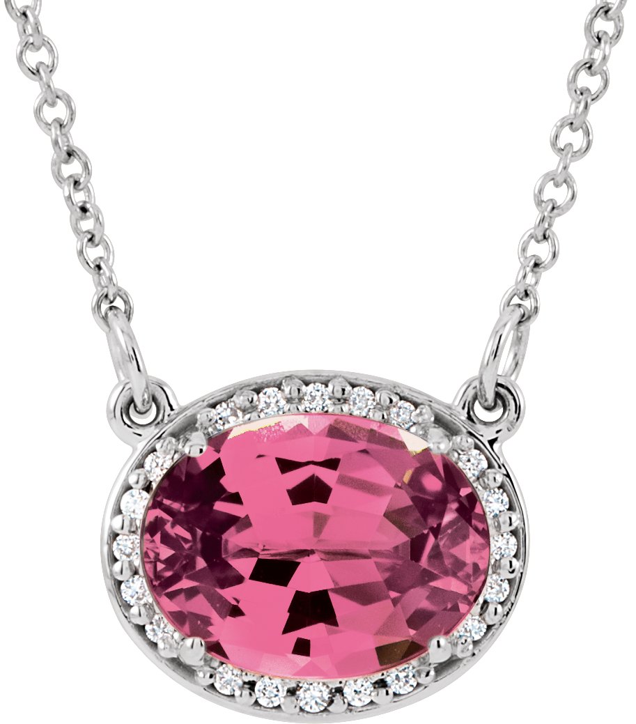 14K White Pink Tourmaline & .05 CTW Diamond 16.5 inch Necklace