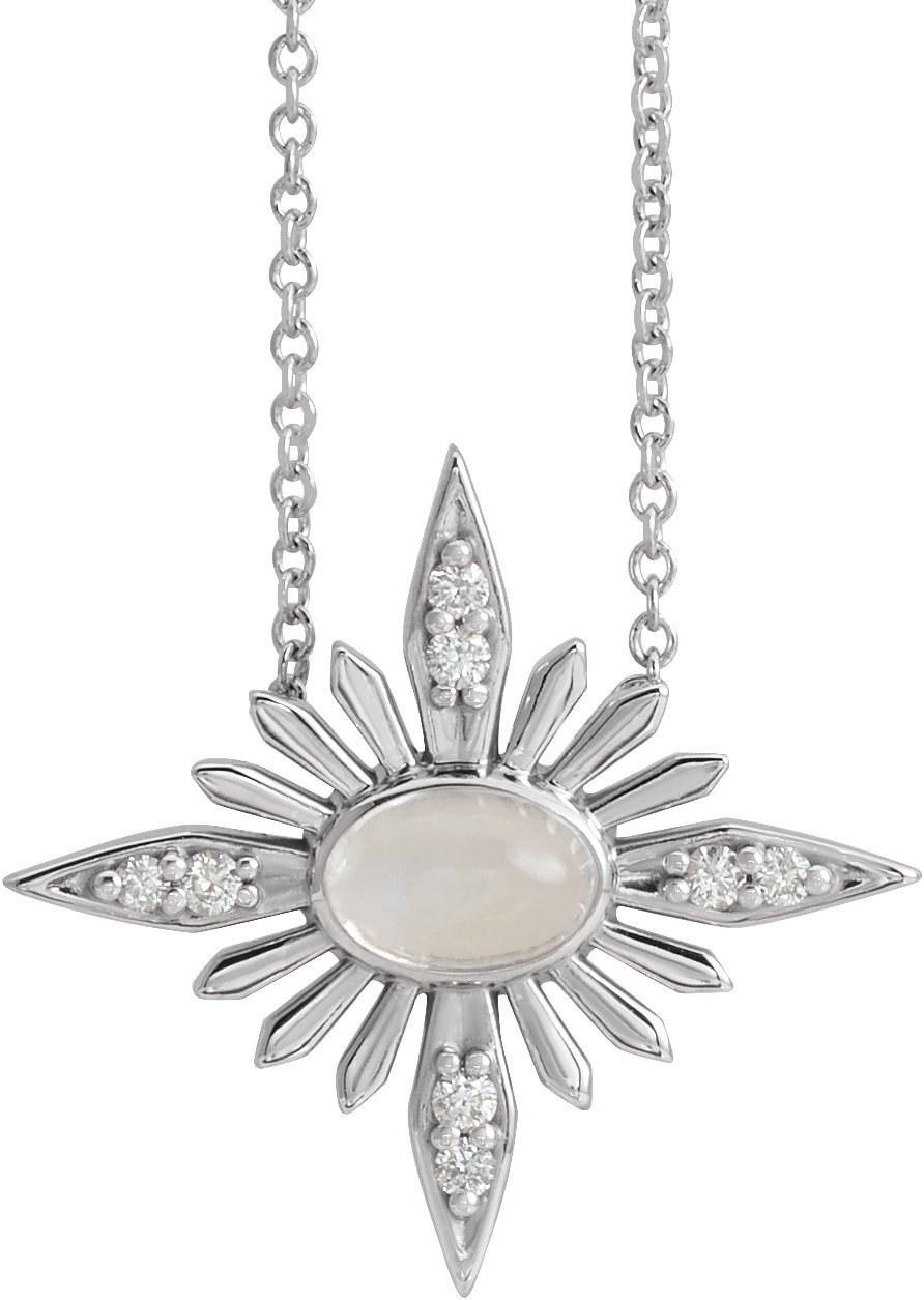 14K White Rainbow Moonstone & .08 CTW Diamond Celestial 16 18 inch Necklace