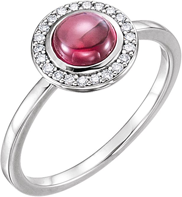 14K White Rhodolite Garnet & 1/10 CTW Diamond Halo Style Ring
