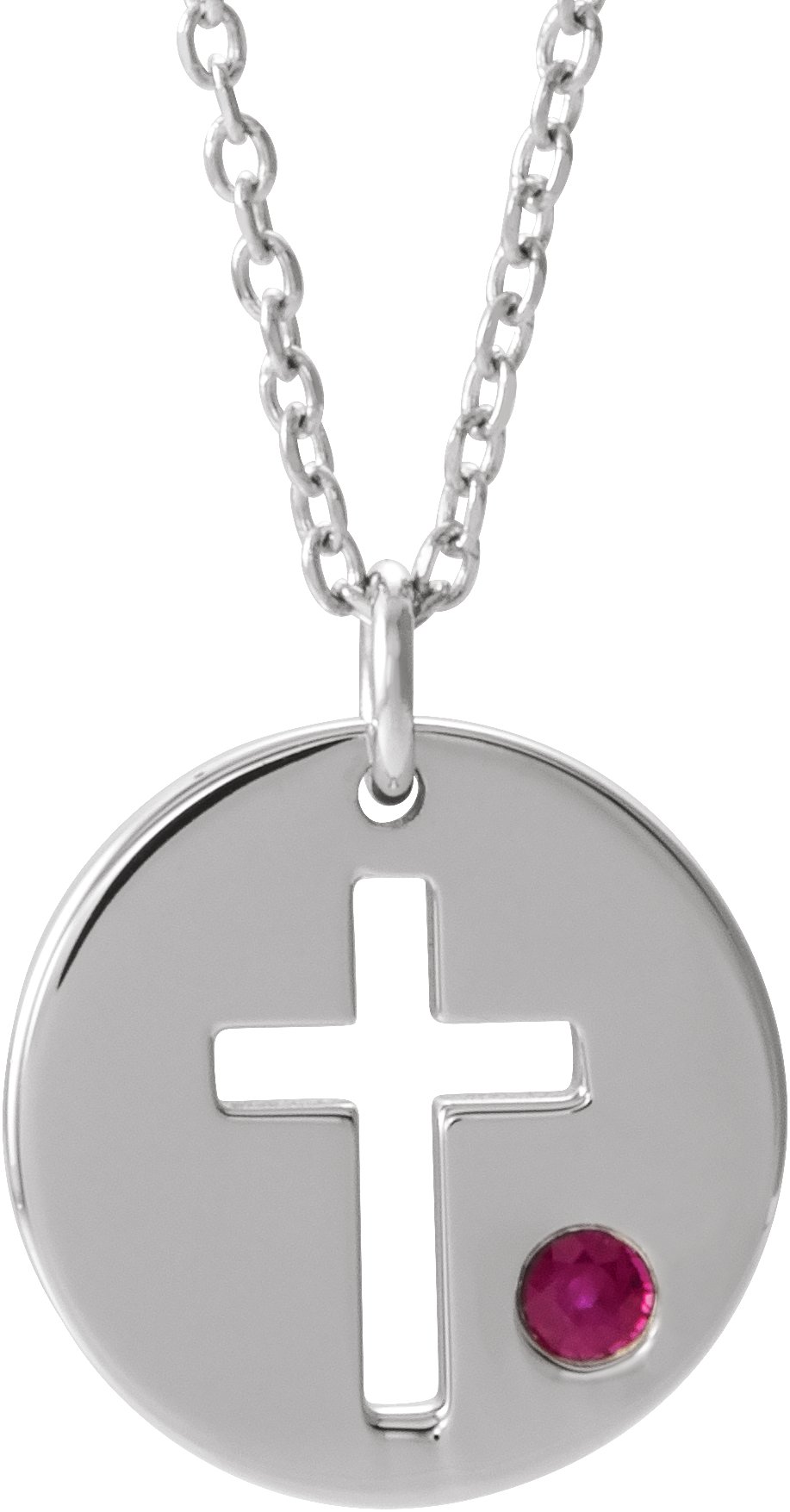 14K White Ruby Pierced Cross Disc 16 18" Necklace Ref. 13377638