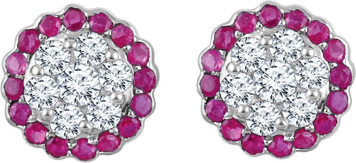 Description: Genuine Ruby And 5/8 Ctw Diamond Earrings With Backs