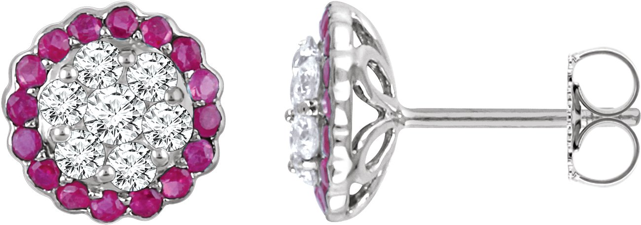 14K White Ruby & 5/8 CTW Diamond Earrings