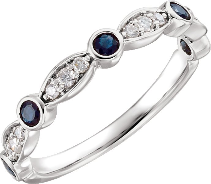 Description: Genuine Blue Sapphire And 1/6 Ctw Diamond Ring