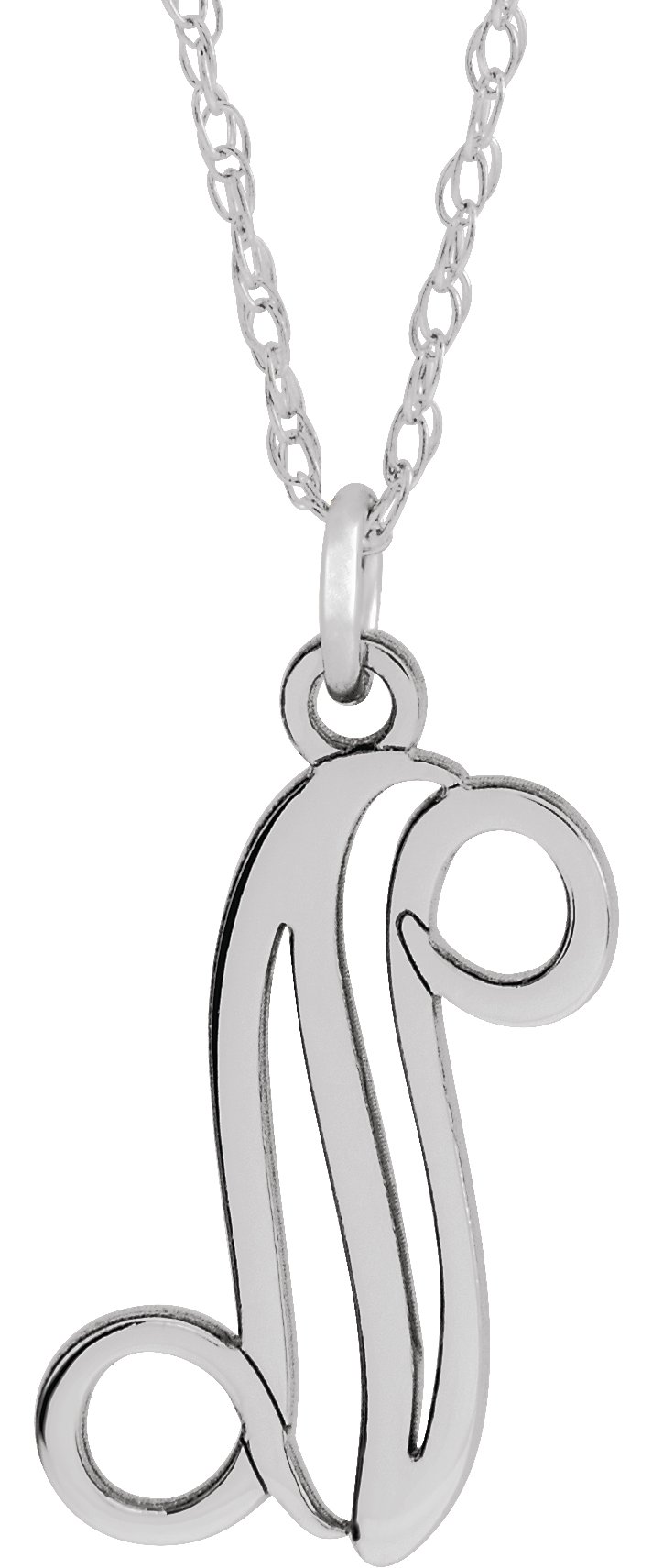 14K White Script Initial N 16 18" Necklace Ref. 16047059