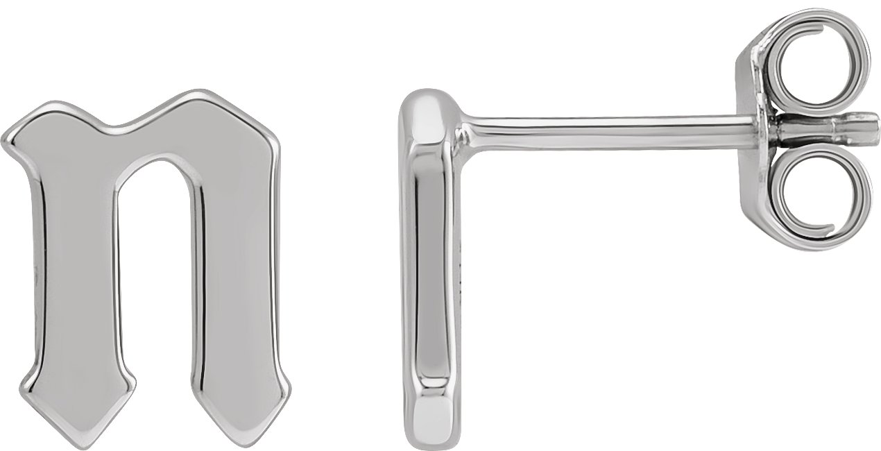 14K White Single Gothic Initial N Earring Ref 18434085