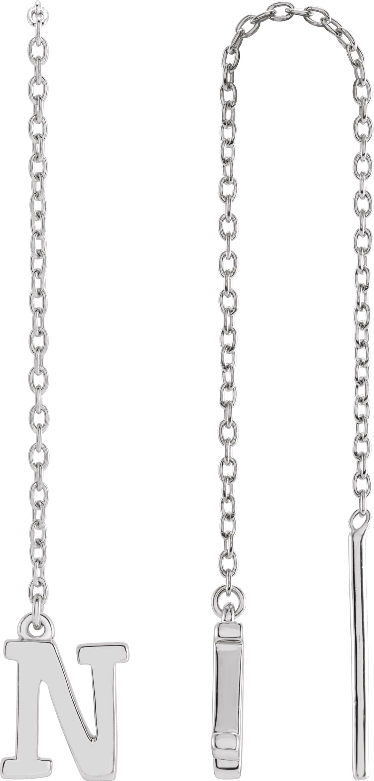 14K White Single Initial N Chain Earring