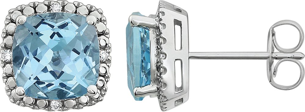 Description: Genuine Sky Blue Topaz And .06Ctw Diamond Earrings