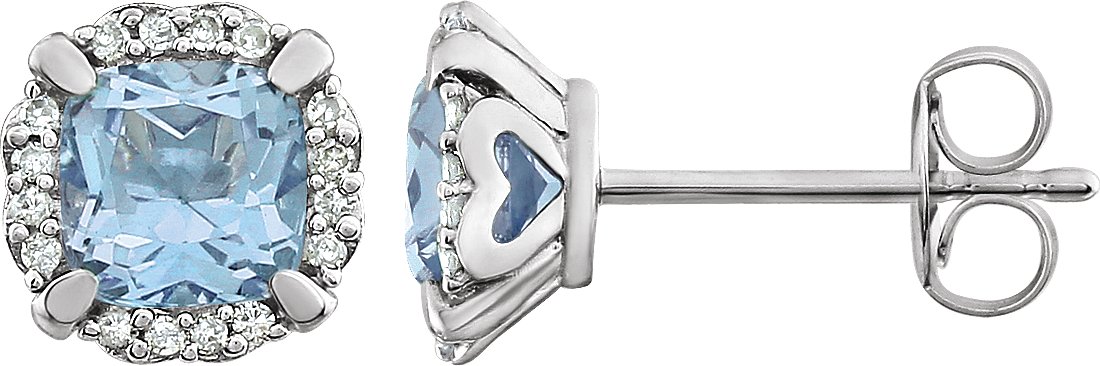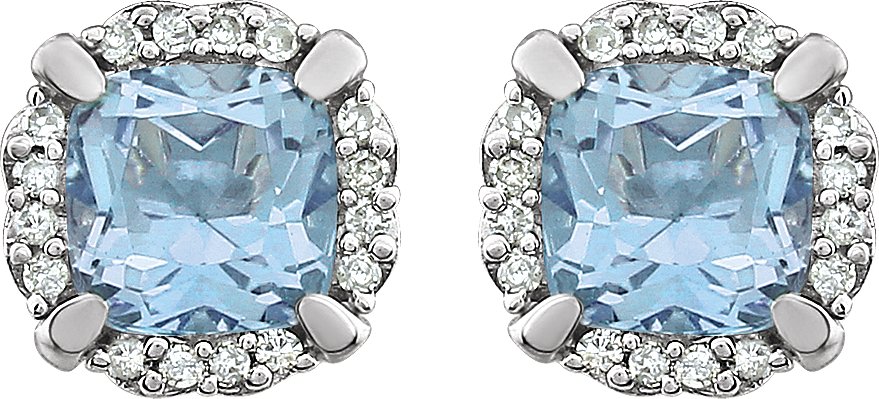 14K White Sky Blue Topaz & 1/10 CTW Diamond Earrings