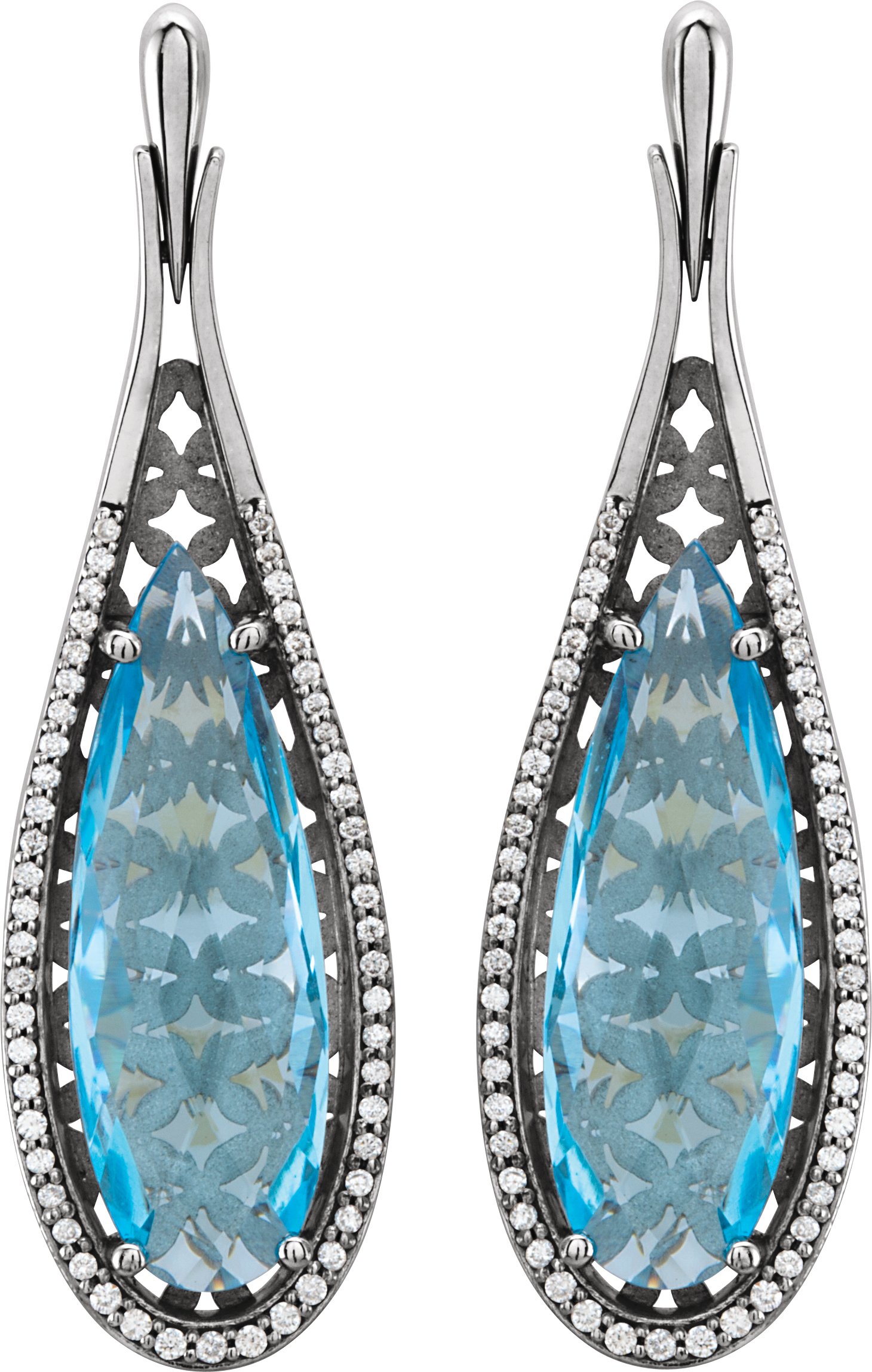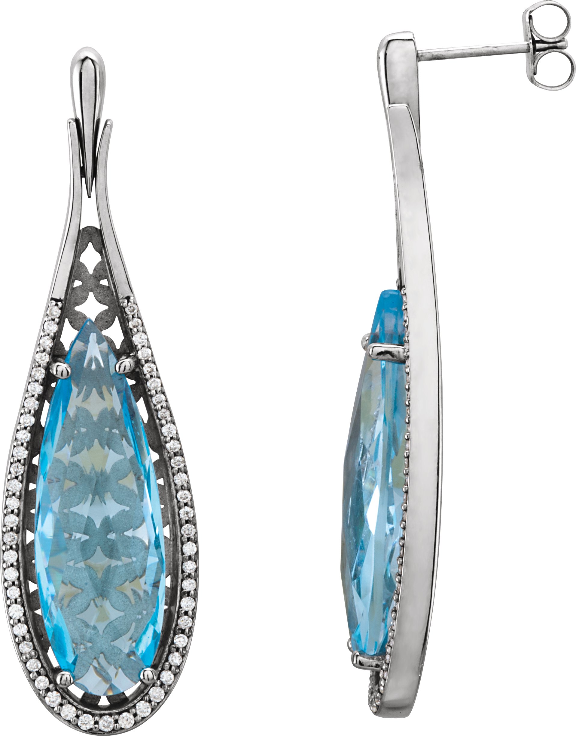14K White Sky Blue Topaz and .33 CTW Diamond Earrings