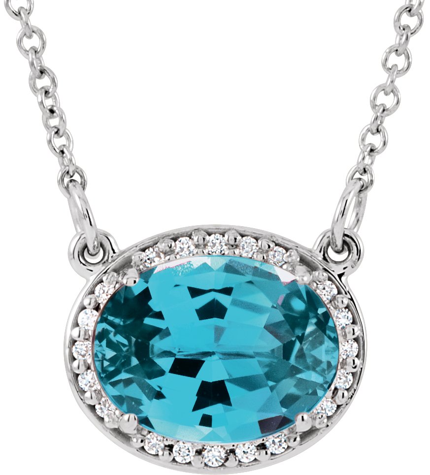 14K White Swiss Blue Topaz & .05 CTW Diamond 16.5 inch Necklace
