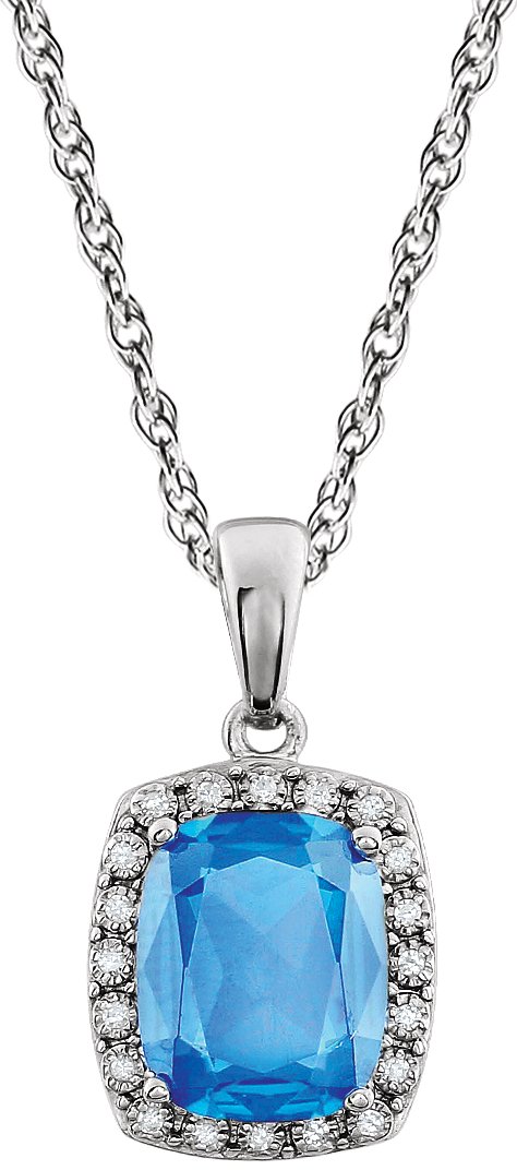 14K White Swiss Blue Topaz & .05 CTW Diamond 18 inch Necklace