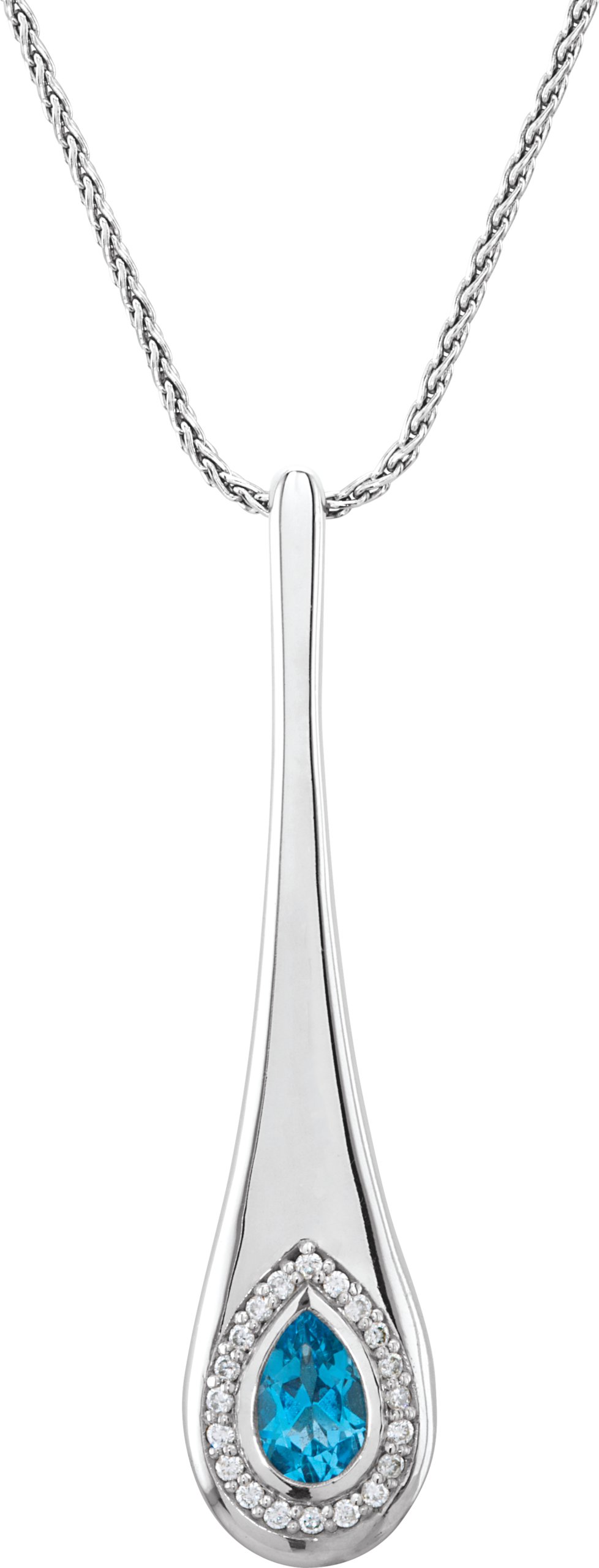 Description: Genuine Swiss Blue Topaz And 1/6 Ctw Diamond Necklace
