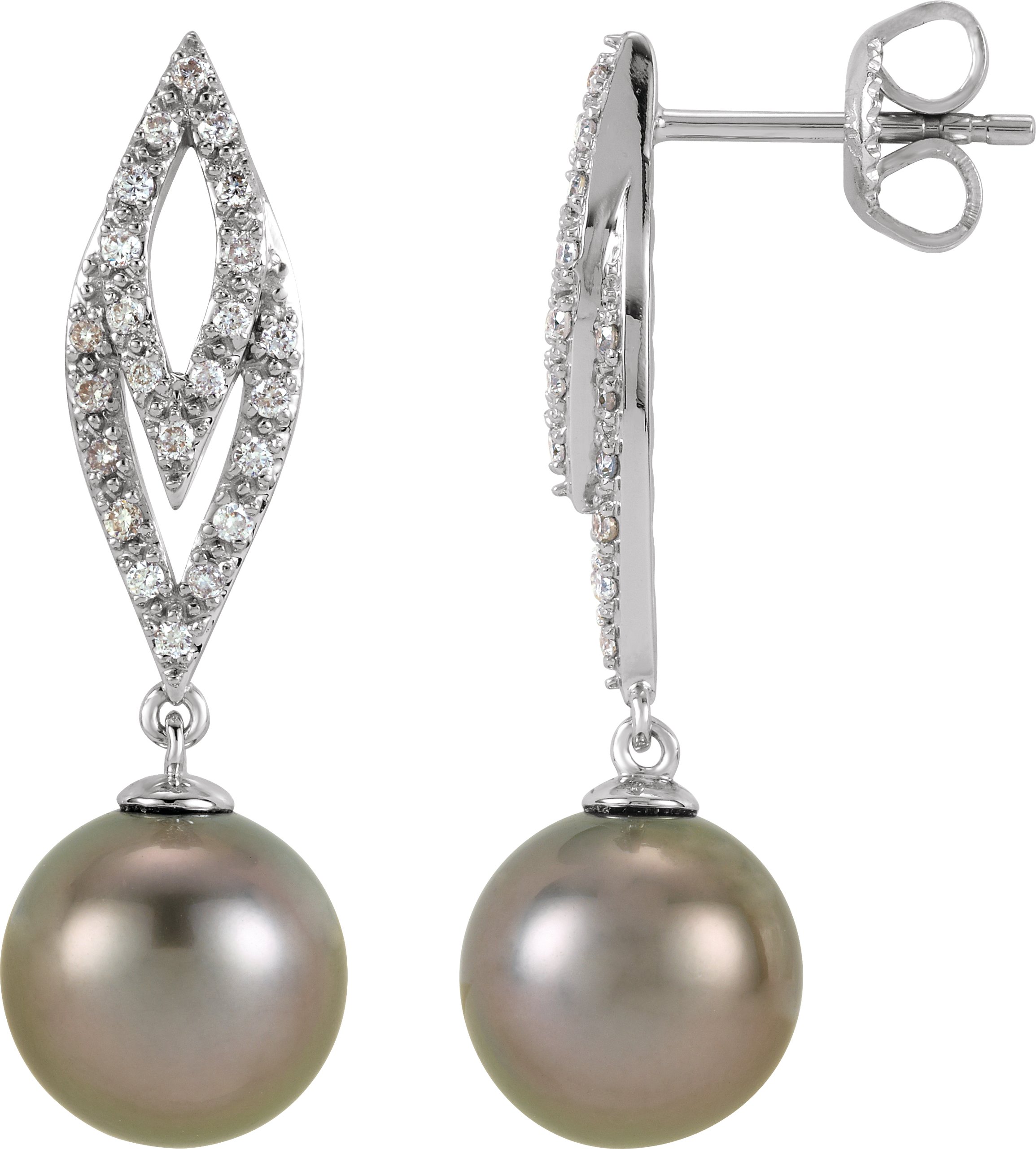 14K White Tahitian Pearl & 1/4 CTW Diamond Earrings