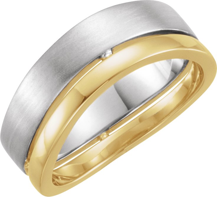 14K White Yellow 6.4 mm Curved Band with Polished and Satin Finish Size 11 Ref 10188070