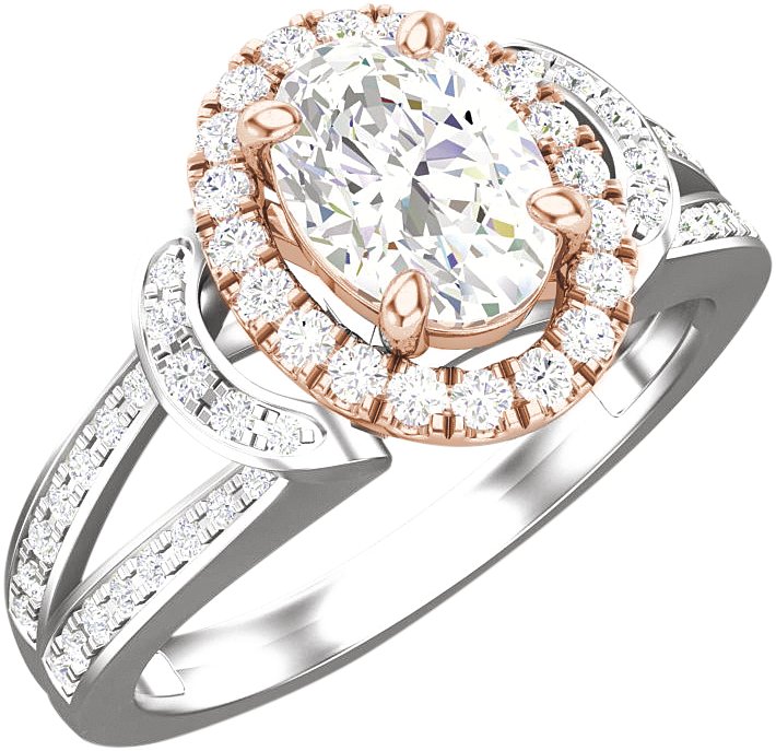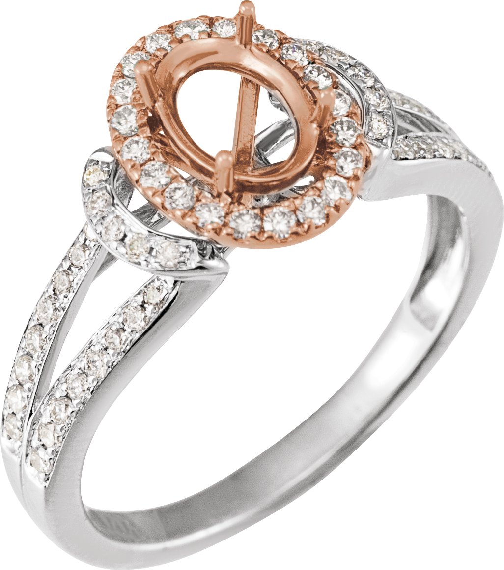 14K White and Rose 7x5 mm Oval Blue Sapphire 0.33 CTW Natural Diamond Engagement Ring