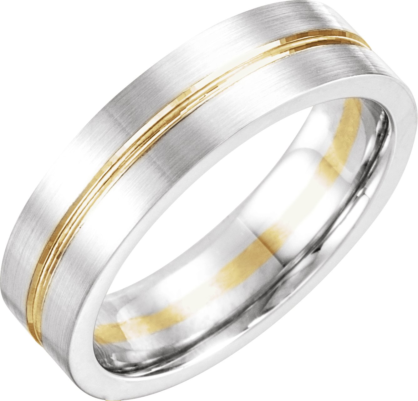 14K White and Yellow 6 mm Grooved Band Size 9 Ref 14144082