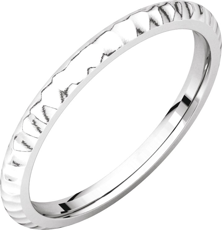 14K X1 White 2 mm Half Round Band with Hammer Finish Size 5.5