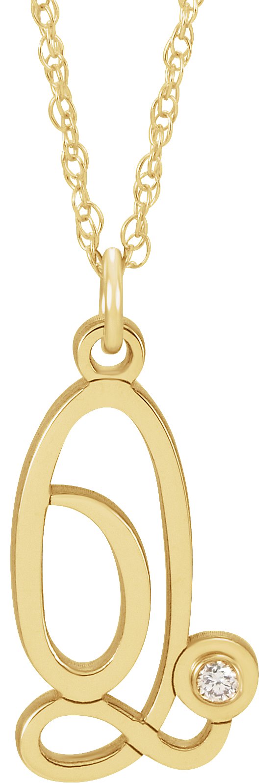14K Yellow .02 CT Diamond Script Initial Q 16 18" Necklace Ref. 16047556