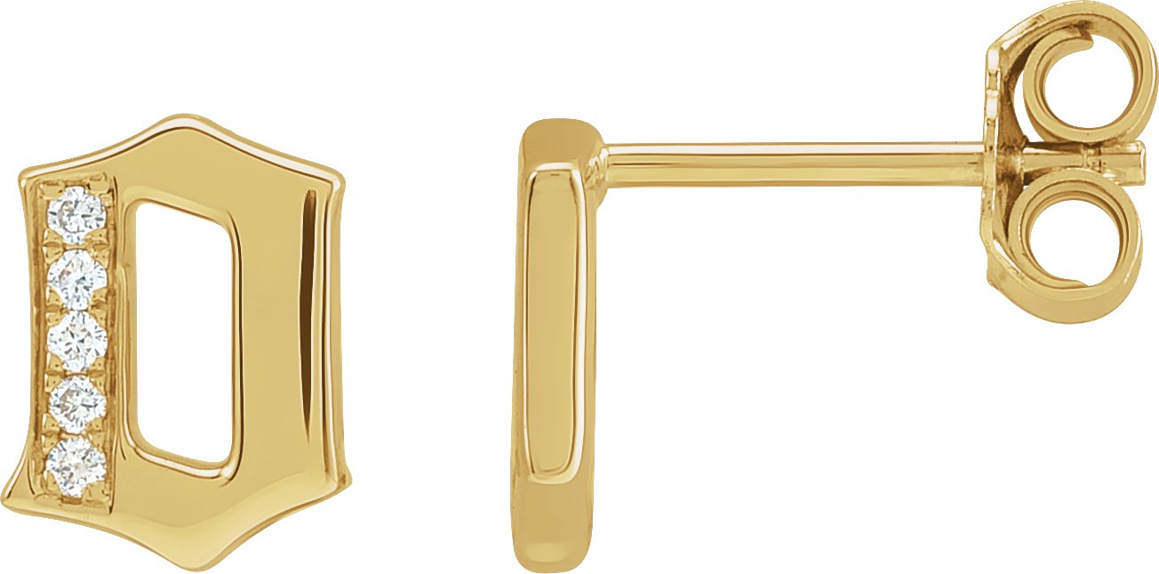 14K Yellow .02 CTW Diamond Single Gothic Initial O Earring Ref 18433476
